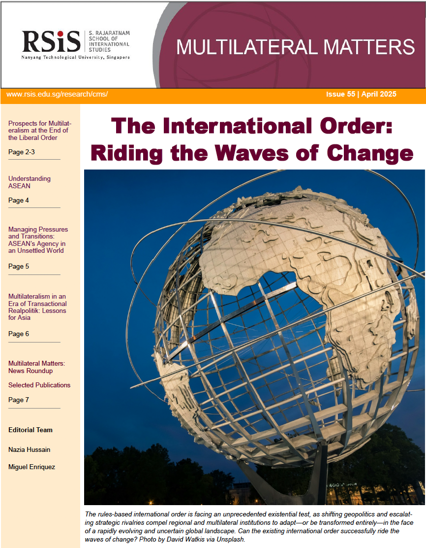 In this issue’s featured commentary, Dr Joel Ng, Research Fellow and Head of CMS, explores President Donald Trump’s February 2025 executive order which ended US funding for several UN organizations, what it forebodes for the international order, and how the rest of the world can minimise the impending disruptions to multilateralism. Dr Ng argues that regional groupings like ASEAN can serve as a buffer for smaller states to manage the pressures of uncertainty in the global environment, but ASEAN-led venues for dialogue like the ASEAN Regional Forum and the East Asia Summit should be retrofitted to “more effectively address the issues of the day”.