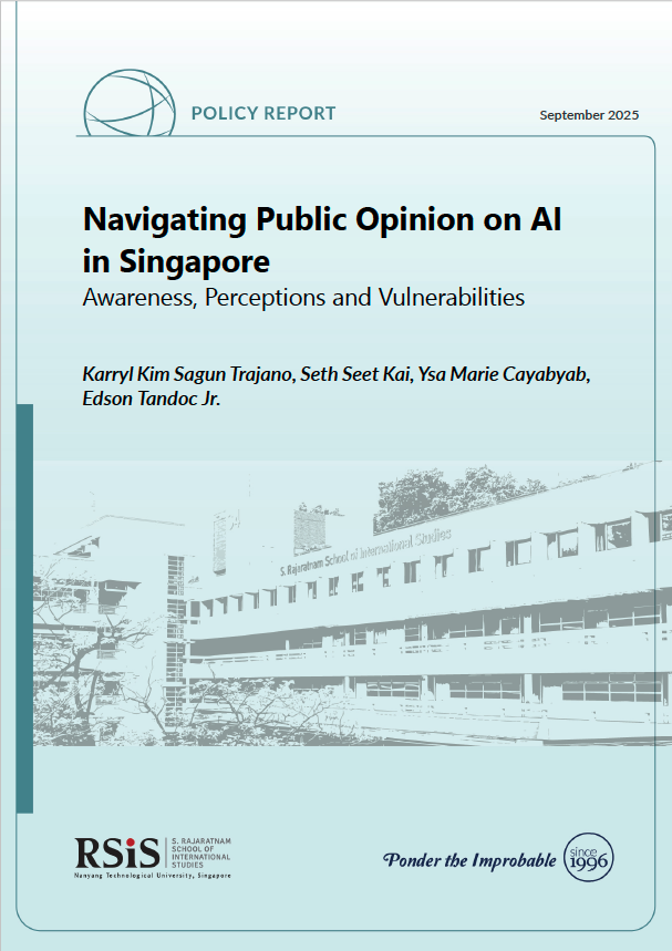 This policy report examines public perceptions of artificial intelligence (AI) in Singapore amid the ongoing advancement of the technology. Public opinion is increasingly significant due to the threat of cognitive warfare, where sentiment can be weaponised to influence behaviour. Through a national online survey of adult residents in Singapore, the report explores AI diffusion, awareness and perceptions that could lead to vulnerabilities in the city-state. Findings reveal some gaps in public awareness, a growing AI divide, and concerns about harm and ethics. Strengthened governance and public engagement can be crucial to maximise AI’s potential while ensuring public safety and security.