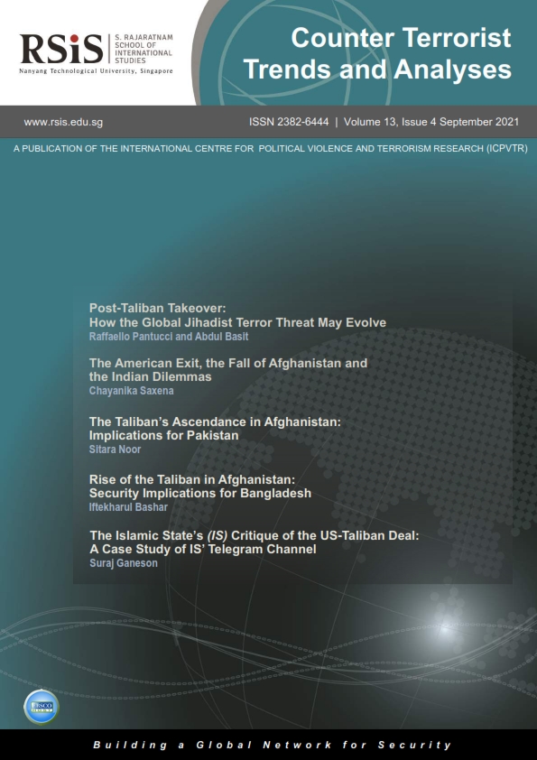 In the fourth article, Iftekharul Bashar looks at the security implications of the Taliban’s victory in Afghanistan for Bangladesh. Much like the rest of South Asia, Bangladesh has a history of Islamist extremism and terrorism, and is likely to face an uptick in terrorist activity. Developments in Afghanistan will rejuvenate terrorist groups in Bangladesh that share a common ideology with the Taliban, and are seeking to establish ties with the new regime. The author argues there could be increased attempts by Bangladeshi militants to travel to Afghanistan for combat or operational training, or indirectly benefit from the lawless situation in the latter. As such, proactive monitoring, effective border security, and regional and international collaboration will be required to manage the evolving threat.