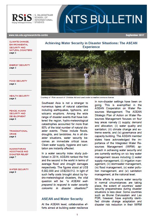 In a water security index study published in 2014, ASEAN ranked the first and the second in the world in terms of average flood and drought damages respectively. The figures stood at US$ 6,002,888 and US$239,512. In light of such hefty costs brought about by hydro-meteorological disasters, the vital question will be: “is ASEAN well prepared to respond to water security concerns in disaster situations?”