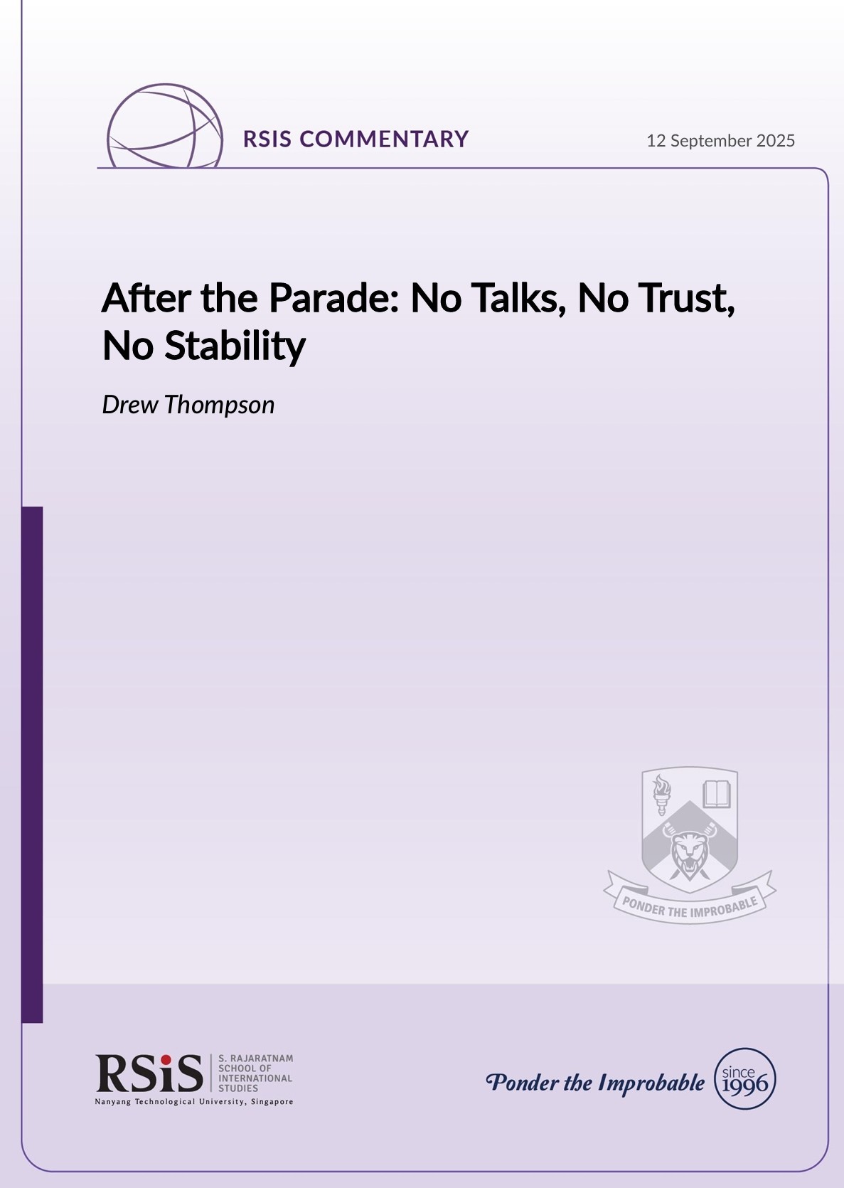 Drew Thompson is a Senior Fellow at the S. Rajaratnam School of International Studies (RSIS) at Nanyang Technological University (NTU) in Singapore. Previously, he served as the director for China, Taiwan, and Mongolia in the Office of the Secretary of Defense of the US. This commentary is a condensed version of an op-ed originally published by ThinkChina on 10 September 2025. It is republished with permission.