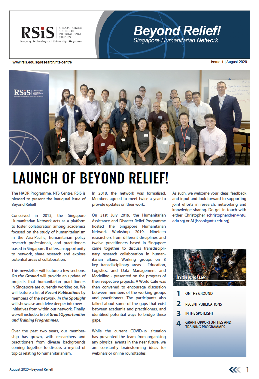 The Humanitarian Assistance and Disaster Relief Programme, NTS Centre, RSIS, is pleased to present the inaugural issue of Beyond Relief!