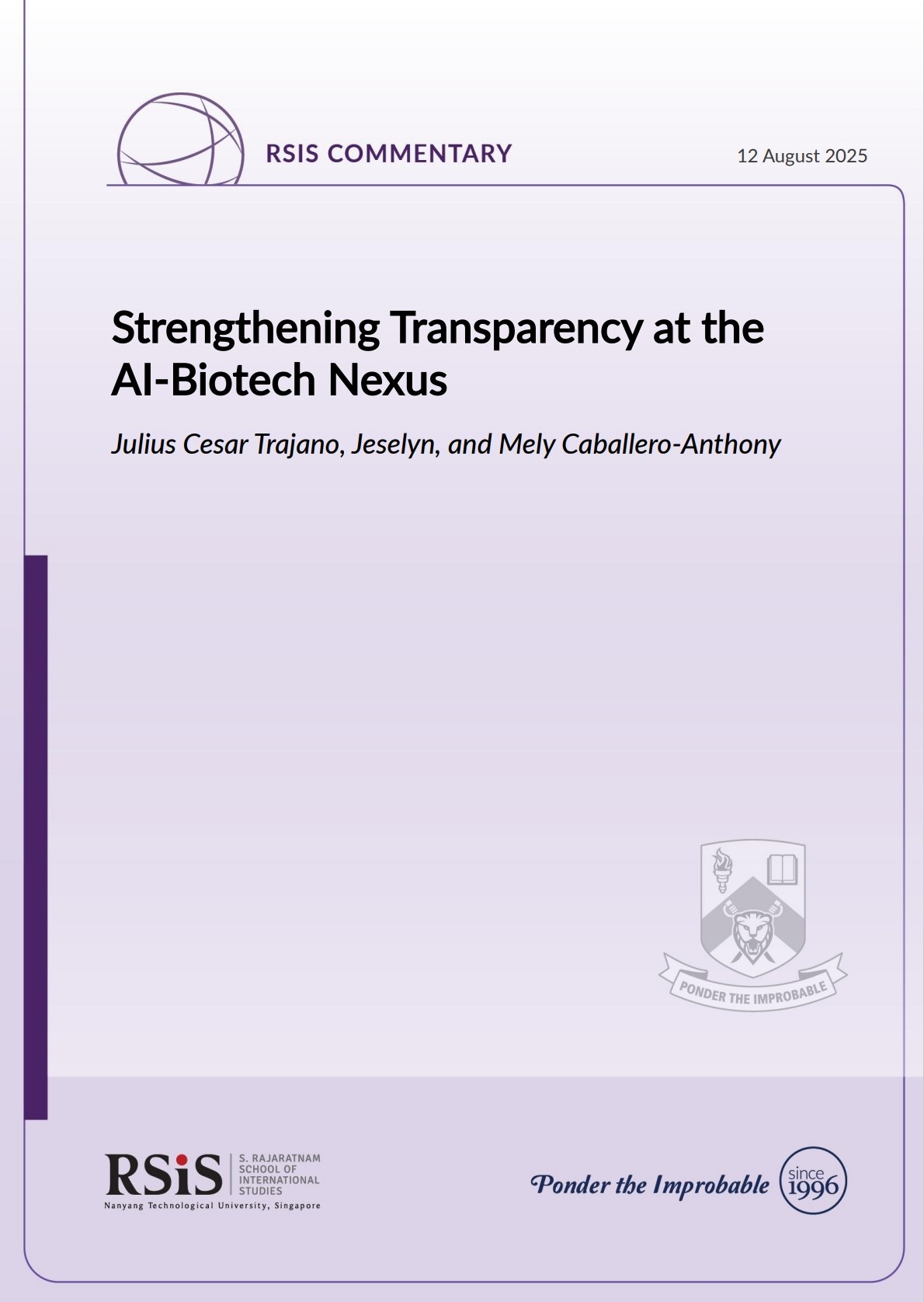 Julius Cesar Trajano and Jeselyn are respectively Research Fellow and Research Analyst at the Centre for Non-Traditional Security Studies (NTS Centre) at the S. Rajaratnam School of International Studies (RSIS). Mely Caballero-Anthony is Professor and Head of the NTS Centre, as well as the Biosecurity and International Security Lead of the Asia Centre for Health Security.