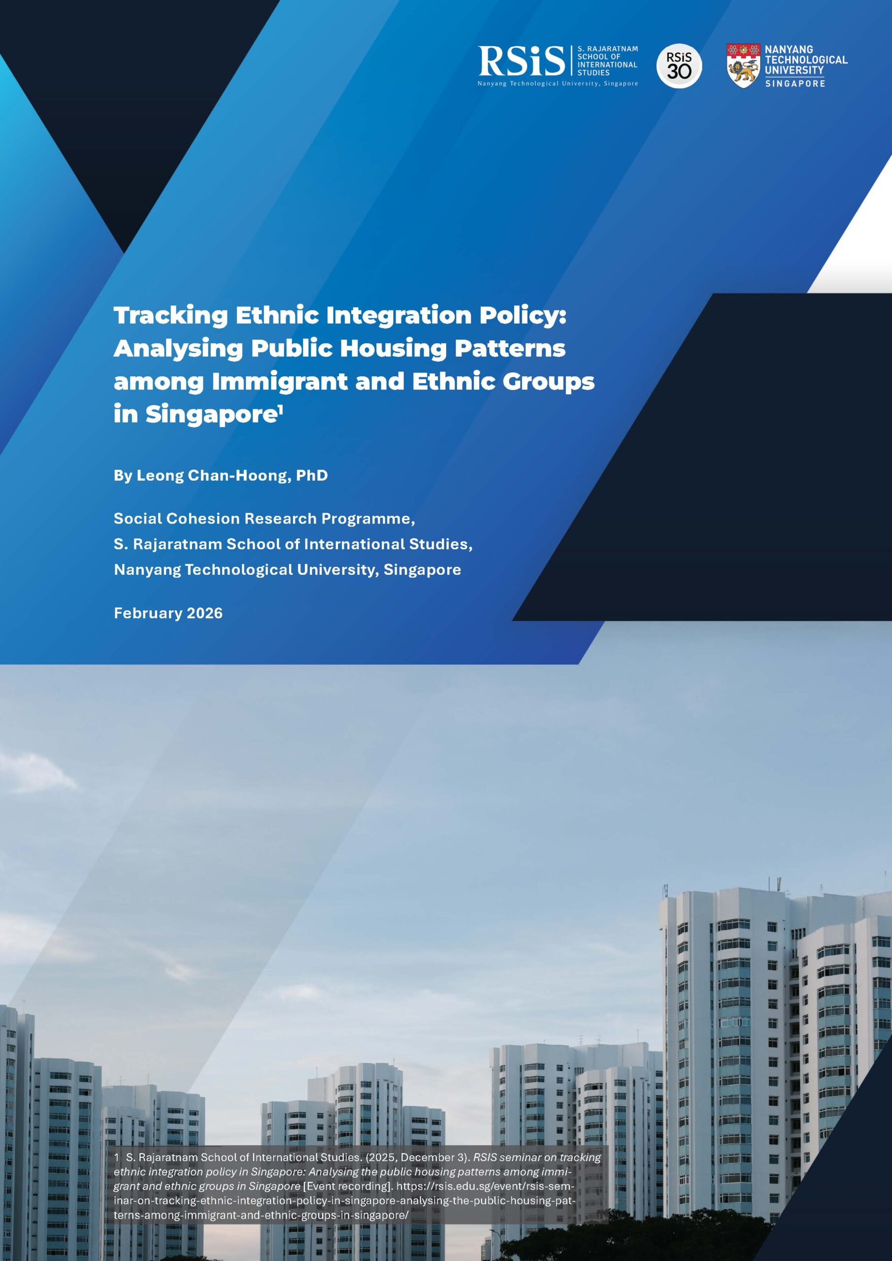 This report examines Singapore’s Ethnic Integration Policy (EIP) to prevent ethnic enclaves in public housing. The EIP was introduced in 1989, and was later extended to include permanent resident households in 2010. Using administrative data from the EIP portal, the study analyses evolving spatial housing patterns among different racial and permanent resident groups from 2016 to 2025. It also considers the implications of these trends for fostering social cohesion in increasingly diverse neighbourhoods.
