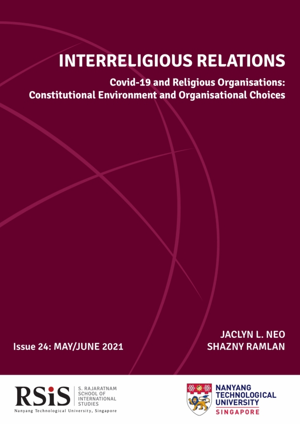 - Interreligious Relations (IRR) Issue 24 – Covid-19 and Religious Organisations: Constitutional Environment and Organisational Choices by Jaclyn L. Neo and Shazny Ramlan